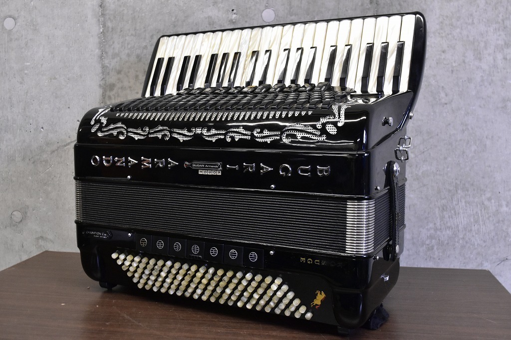 東京都新宿区のお客様より、お電話にてご連絡いただき、BUGARI ARMANDO ブガリ CHAMPIONCASS 41鍵の査定に伺いました。イタリア東岸の小都市カステルフィダルドのアコーディオンメーカー、ブガリ・アルマンド社のアコーディオンです。多少の使用感・経年感の見受けられる外観でしたが、音出し・基本動作確認をいたしましたところ問題ございませんでしたので、本体、ハードケース、ソフトケースのお引取りをさせていただきました。ご連絡いただき、すぐに査定に伺うことができましたので、とてもスピーディーで、査定額にも大変喜んでいただけました!この度は楽器の買取屋さんにお任せいただき、ありがとうございました!