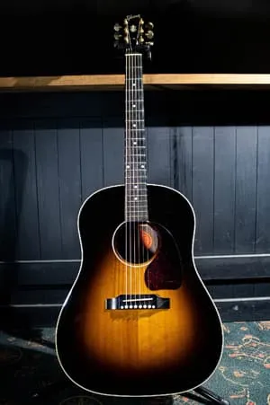 J-45 Standardは、ギブソンを代表するアコースティックギターとして長く親しまれているモデルで、豊かな低音と温かみのある中音域が特徴です。