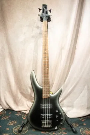 SR300Eは、スリムなネックシェイプと軽量ボディによる快適な演奏性が特長です。多彩な音作りが可能で、ジャンルを問わず幅広いプレイヤーに支持されています。中古市場でも安定した需要を誇るベースです。
