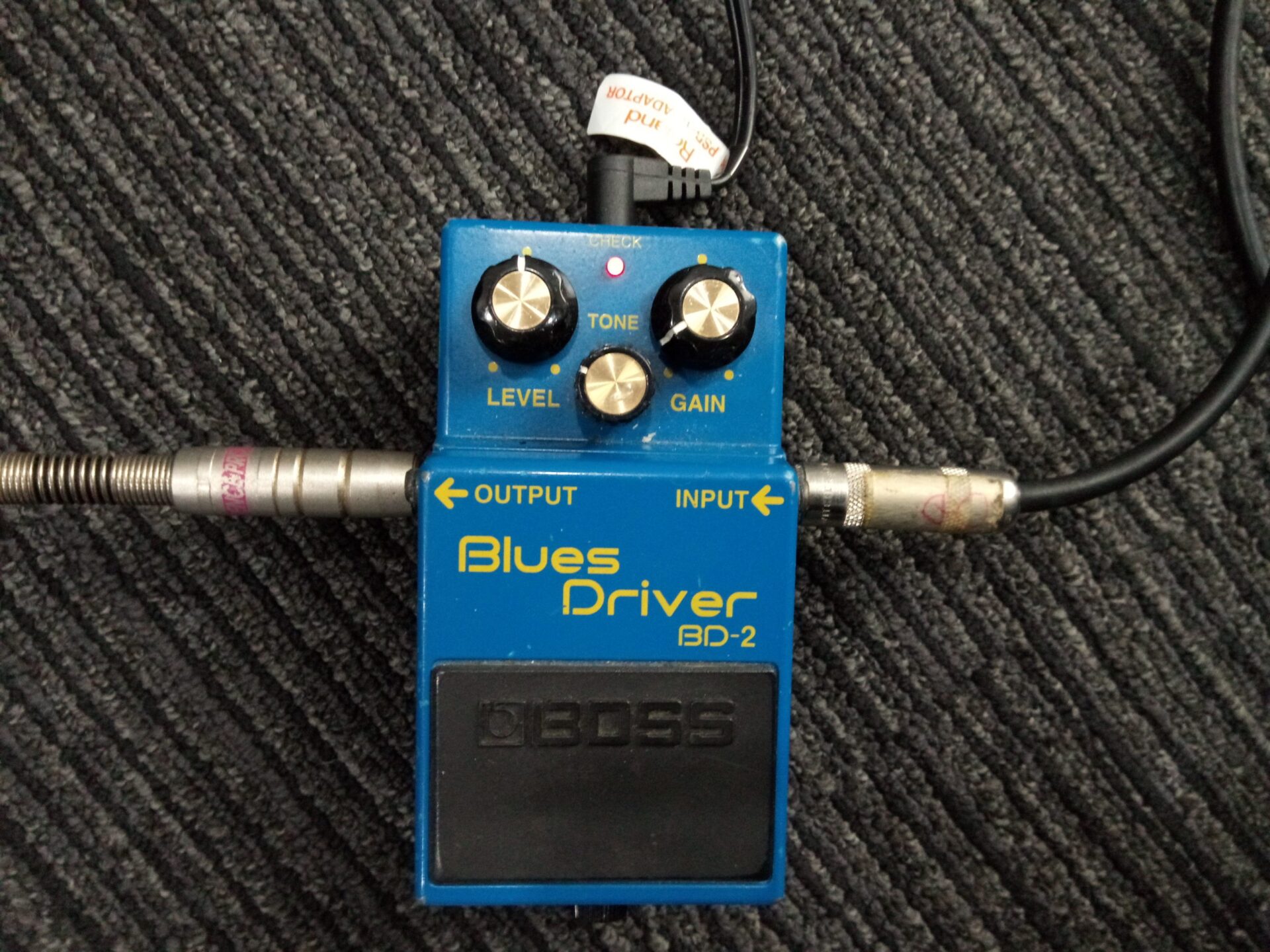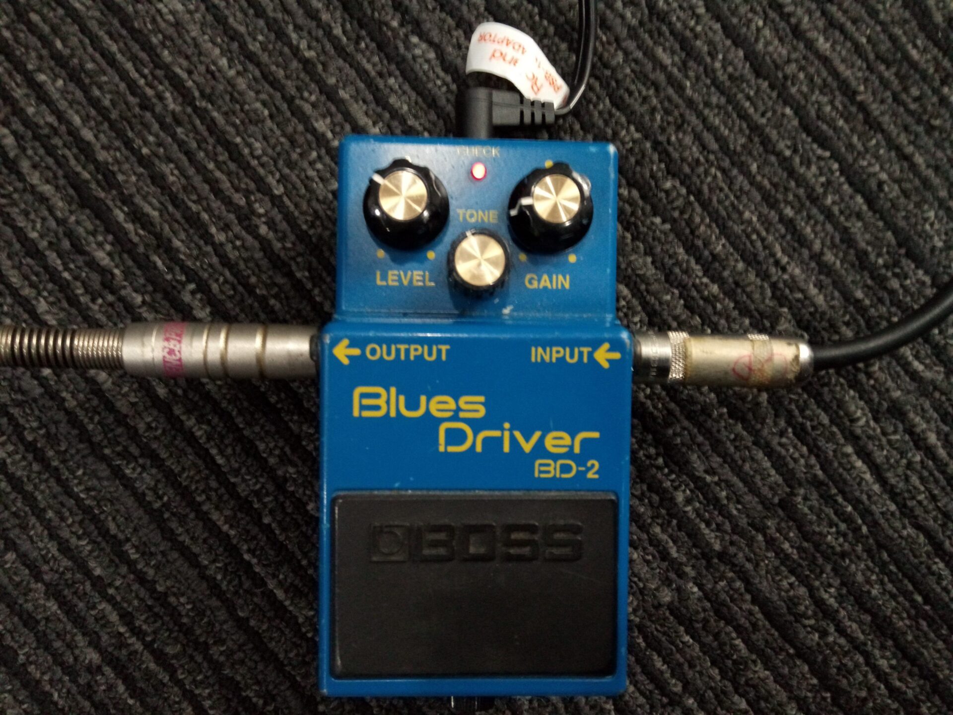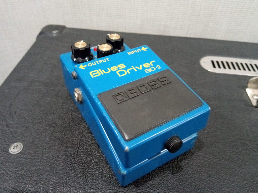 チューブアンプにオーバードライブをつなげて、ブースターとして使うことがあります。BOSSのスーパー・オーバードライブやIbanezのチューブスクリーマーが定番ですが、ブルースドライバーもオススメ。