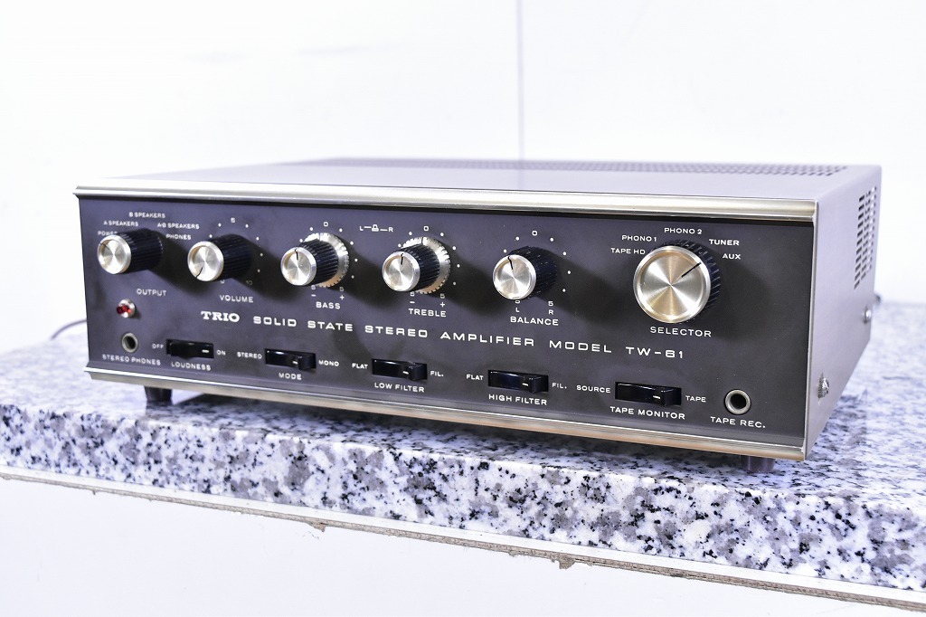 兵庫県明石市のお客様より、TRIO トリオ プリメインアンプ TW-61のお買取をさせていただきました。多少の使用感・経年感の見受けられる外観でしたが、通電・音出し・基本動作の確認をいたしましたところ問題ございませんでしたので、本体、元箱のお引取りをさせていただきました。オーディオの買取屋さんなら、全国から送料無料、高額査定にてお買取しております。TRIO トリオ プリメインアンプ TW-61のご売却をお考えのお客様がいらっしゃいましたら、ぜひオーディオの買取屋さんまでご連絡ください。