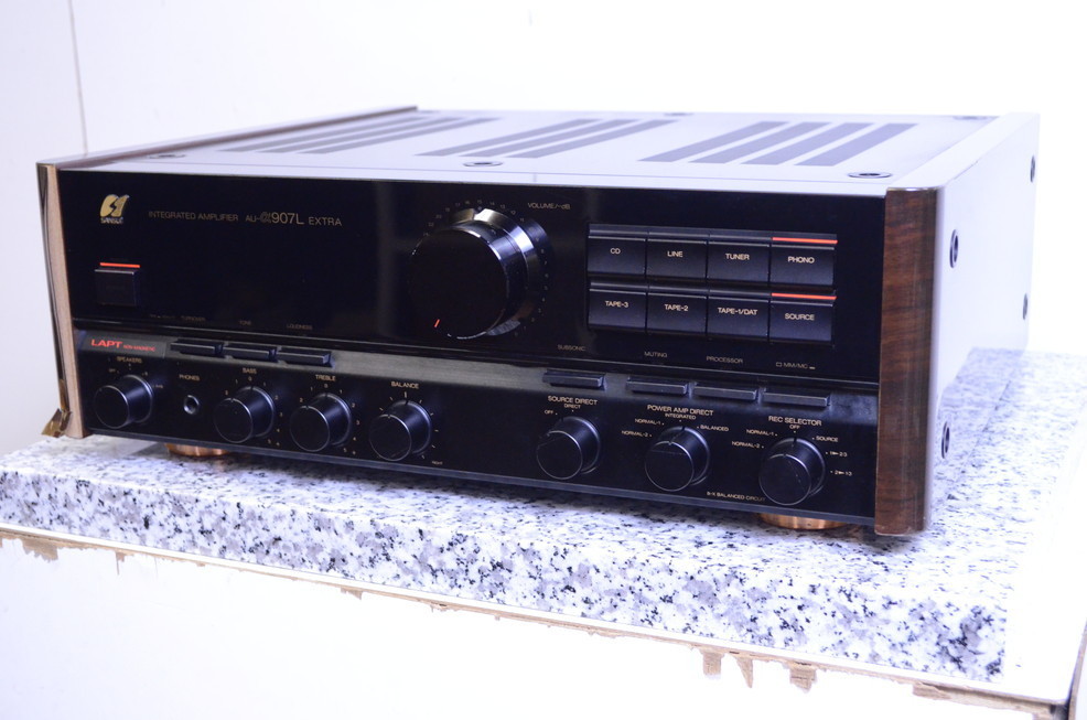 東京都大田区のお客様より、お電話にてお問い合わせいただき、Sansui/サンスイ プリメインアンプ AU-α907L EXTRAの査定のため早速ご自宅まで伺いました。キズ・外装のはがれ、汚れ等、使用感・経年感の見受けられる外観でしたが、通電・音出し・基本動作の確認をいたしましたところ問題ございませんでしたので、本体のお引取りをさせていただきました。他の買取業者にも査定依頼をされていたそうですが、オーディオの買取屋さんのほうが高額査定になって、頼んで良かったとおっしゃっていただけました。このたびはオーディオの買取屋さんにご依頼いただきありがとうございました!
