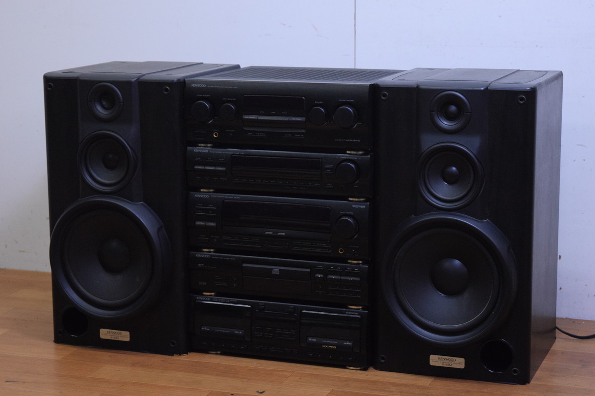 東京都国立市のお客様より、お電話にてお問い合わせいただき、早速お客様のスケジュールに合わせてご自宅まで伺い、KENWOOD ROXY M7 システムコンポ A-97/T-97/GE-970/DP-97/X-87/S-10M/ ケンウッドの査定をさせていただきました。使用感・経年感の見受けられる外観で、A-97/出音にノイズがあり、T-97/ノイズの出音のみ確認、GE-970/動作確認致しました。DP-97/トレイが開いてしまい、X-87/B,chのテープが回転しないためジャンク品でしたが、お引取りをさせていただきました。ジャンク品でもきちんと査定してもらえて、大変助かったとおっしゃっていただけました!このたびはオーディオの買取屋さんにご依頼いただき、ありがとうございました!