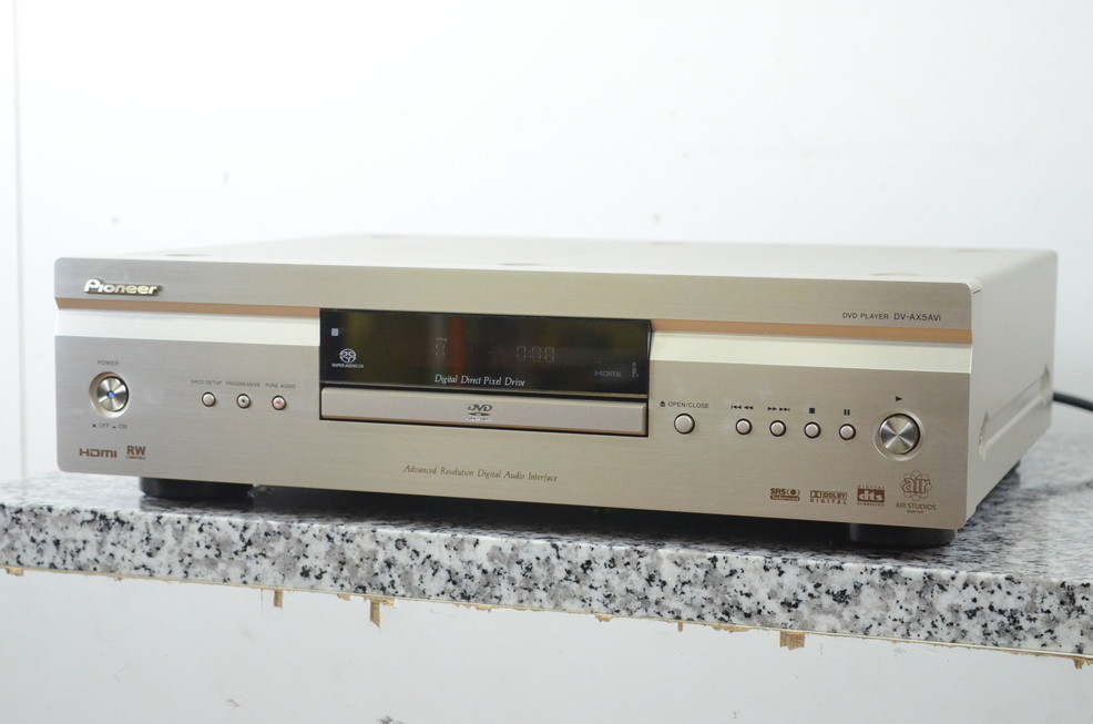 鳥取県米子市のお客様より、宅配買取をご利用いただき、Pioneer パイオニア SACD/DVDプレーヤー DV-AX5AVi の査定をさせていただきました。多少の使用感・経年感の見受けられる外観で、音は出ましたが映像が出力されず、PURE AUDIOが解除できない状態のジャンク品でしたが、本体、汎用電源ケーブルのお引取りをさせていただきました。オーディオの買取屋さんなら、修理が必要な不具合のあるジャンク品の場合であっても、しっかりと査定させていただきます。現状でのご売却が不安なお品の場合でも、ぜひオーディオの買取屋さんにお任せください!