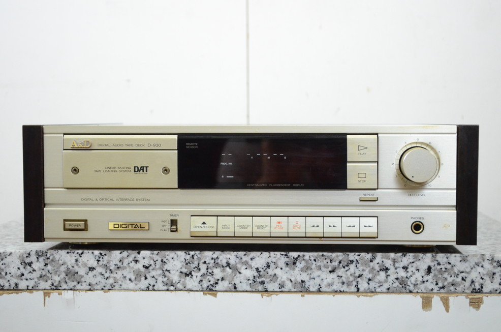 栃木県鹿沼市のお客様より、宅配買取をご利用いただき、A&D DATデッキ D-930のお買取をさせていただきました。キズ、汚れ等、使用感・経年感の見受けられる外観で、トレイが開きませんでしたのでジャンク品でしたが、本体のお引取りをさせていただきました。オーディオの買取屋さんなら、修理が必要な不具合のあるジャンク品の場合であっても、しっかりと査定させていただきます。全国から送料無料、高額査定にてお買取しておりますので、現状でのご売却に不安があるお品のご売却も、ぜひオーディオの買取屋さんにお任せください!