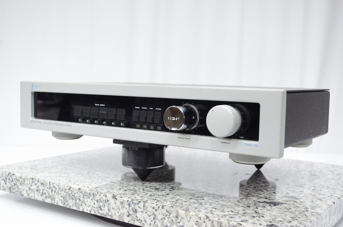 島根県出雲市のお客様より、宅配買取をご利用いただき、SPECTRAL スペクトラル DMC-15 プリアンプの査定をさせていただきました。キズ、汚れ等、多少の使用感・経年感の見受けられる外観で、ノブが変更されていて、スパイクが取り付けられており、制震テープが貼られている状態のお品でした。通電・音出し・基本動作の確認をいたしましたところ問題ございませんでしたので、汎用電源ケーブル付属でお引取りをさせていただきました。オーディオの買取屋さんなら、カスタマイズされたお品でもしっかりと査定させていただきます。大切にされてきたオーディオのご売却をお考えなら、ぜひオーディオの買取屋さんまでご連絡下さい!