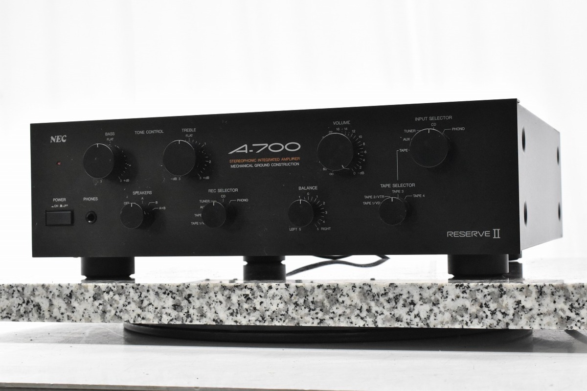 静岡県伊豆の国市のお客様より、宅配買取をご利用いただき、NEC A-700 プリメインアンプの査定をさせていただきました。キズ、汚れ等、使用感・経年感の見受けられる外観で、通電・音出し・基本動作の確認をいたしましたところ、ガリがありましたが、本体のお引取りをさせていただきました。オーディオの買取屋さんなら、不具合のあるお品の場合でも、全国から送料無料、高額査定にてお引取りさせていただいております!NEC A-700 プリメインアンプのご売却をお考えのお客様がいらっしゃいましたら、ぜひオーディオの買取屋さんまでご連絡ください!