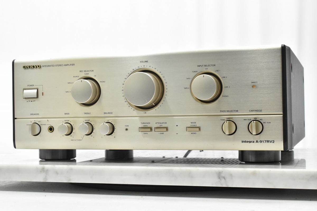 埼玉県加須市のお客様より、宅配買取をご利用いただき、ONKYOオンキョー INTEGRA A917 RV2 プリメインアンプの査定をさせていただきました。キズ、汚れ等、多少の使用感・経年感の見受けられる外観でしたが、通電・音出し・基本動作の確認をいたしましたところ、TONEツマミをTONEにすると音が出ませんので難あり品でしたが、本体のお引取りをさせていただきました。オーディオの買取屋さんなら、修理が必要な不具合のあるお品でもしっかりと査定させていただきます。大切にされてきたオーディオのご売却なら、ぜひオーディオの買取屋さんにお任せください!
