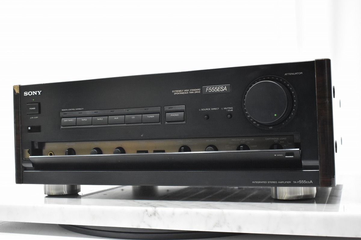 群馬県富岡市のお客様より買取査定をご希望とお問い合わせを頂きまして、着払いで弊社までお送りいただき、SONY TA-F555ESA プリメインアンプ ソニーの宅配買取をさせて頂きました。パワーMOS FET搭載のプリメインアンプで、とても素直な音質です。フロントパネルが破損しているなど、キズ・外装の破れ、汚れ等、使用感・経年感の見受けられる外観でしたが、通電・音出し・基本動作の確認をいたしましたところ問題ございませんでしたので、本体のお引き取りをさせていただきました。オーディオの買取屋さんなら、全国から送料無料、高額査定にてお買取りしております。SONY TA-F555ESA プリメインアンプ ソニーのご売却をお考えなら、ぜひオーディオの買取屋さんにおまかせください!