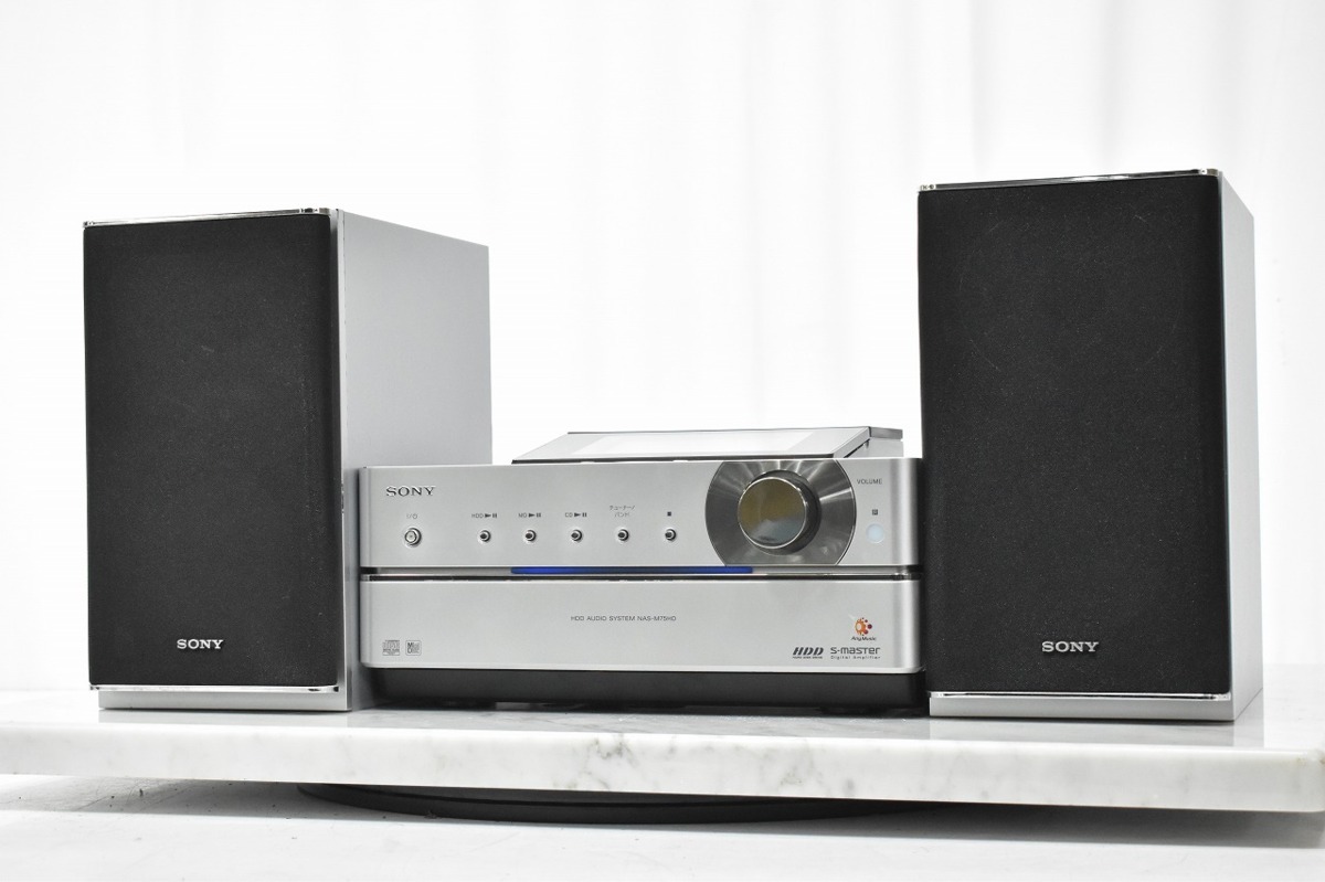 秋田県鹿角市のお客様より、宅配査定をご利用いただき、SONY ソニー NET JUKE NAS-M75HD SS-M75HD システムコンポの買取をさせていただきました。HDD、MDスロットを搭載。MDとCDを最速約20倍速で貯めて、今までの音楽コレクションをこの1台に集約できるシステムコンポです。使用感・経年感の見受けられる外観でしたが、通電・音出し・基本動作確認いたしましたところ問題ありませんでしたので、本体にリモコン、スピーカーケーブルが一本付属した状態でお引取りをさせていただきました。オーディオの買取屋さんなら、ご自宅から着払いでお送りいただくだけで査定ができますので、大変スムーズにご売却いただけます。大切なオーディオのご売却なら、ぜひオーディオの買取屋さんにご連絡ください。