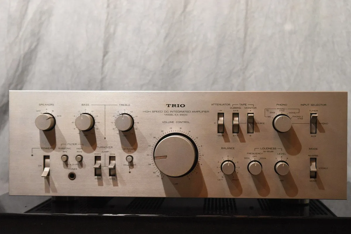 茨城県水戸市にお住まいのお客様よりお問い合わせいただき、ホームページからメールでご依頼を頂き、お客様のスケジュールに合わせてTRIO トリオ KA-9900 プリメインアンプの出張査定へ向かわせて頂きました。キズや汚れなど使用感・経年感が見受けられる外観でしたが、問題なくお引き取りをさせていただきました。お持ちの機器のご売却をお考えなら、ぜひオーディオの買取屋さんにおまかせください! ※商品の状態や年式、市場相場などによって査定額は変動するため、同商品を同価格で買取することは保証いたしかねますのでご了承くださいますようお願い申し上げます。 ※当店は買取専門店のため、ご購入や在庫に関するお問い合わせは受け付けておりません。