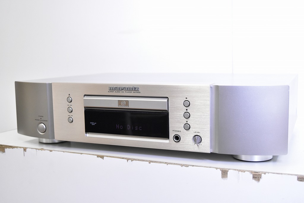 山梨県笛吹市のお客様より、宅配買取にてMarantz マランツ SA7003 SACDプレーヤーのお買取をさせていただきました。宅配査定をご希望とお問い合わせを頂きまして、お電話とメールで手順の案内をさせて頂いてこちらにお送り頂きました。 多少の使用感・経年感のある外観でしたが、通電・音出し等の基本動作の確認をいたしましたところ問題ございませんでしたので、本体、リモコン、説明書、電源ケーブルでお引き取りをさせていただきました。 宅配買取なら、お客様のご自宅より直接、着払いでお送りいただくだけで査定が完了いたしますので、大変便利です。Marantz マランツ SA7003 SACDプレーヤーをご売却検討中のお客様がおりましたら、オーディオの買取屋さんにご相談下さい。