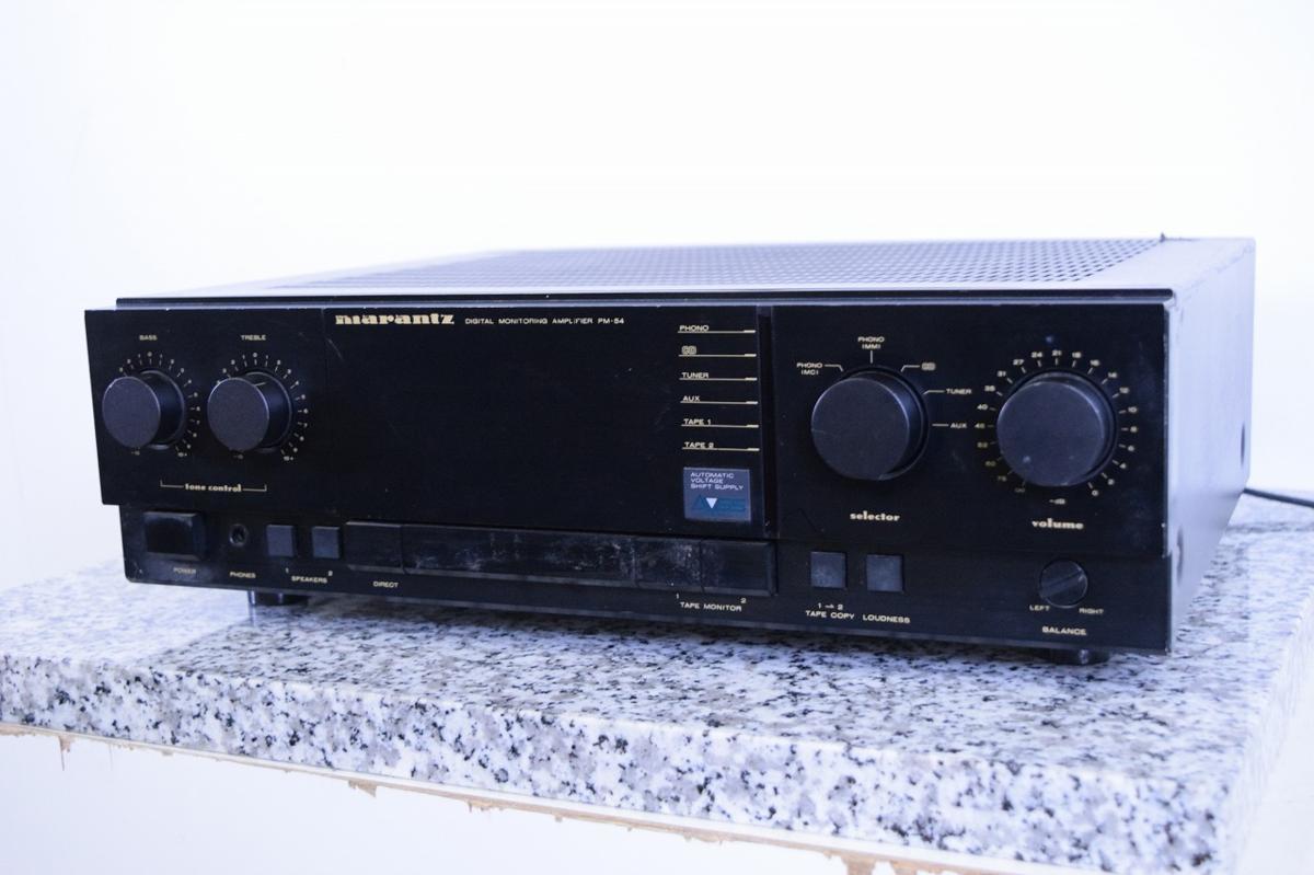 栃木県宇都宮市のお客様より、宅配買取にてMARANTZ マランツ PM-54 プリメインアンプのお買取をさせていただきました。キズ、汚れ等、使用感・経年感の見受けられる外観で、通電・音出し・基本動作の確認をいたしましたところ、L側の出力が弱いのでジャンク品でしたが、本体お引取りをさせていただきました。オーディオの買取屋さんなら、修理が必要な場合やジャンク品であっても、きちんと査定、送料無料にて全国からお買取しております!MARANTZ マランツ PM-54 プリメインアンプのご売却なら、ぜひオーディオの買取屋さんにお問い合わせください。