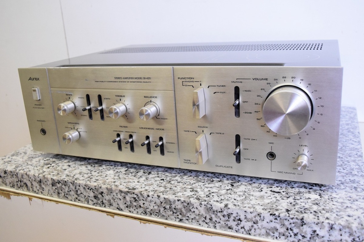 岐阜県中津川市のお客様より、宅配買取にて、Aurex オーレックス プリメインアンプ SB-420のお買取をさせていただきました。キズ、汚れ等、使用感・経年感の見受けられる外観でしたが、通電・音出し・基本動作確認いたしましたところ問題ございませんでしたので、本体のお引取りをさせていただきました。オーディオの買取屋さんなら、ご遠方からのご売却の場合でも、全国から送料無料、迅速対応にてお買い取りをしております。Aurex オーレックス プリメインアンプ SB-420のご売却をご検討中のお客様がいらっしゃいましたら、ぜひオーディオの買取屋さんにご連絡ください!
